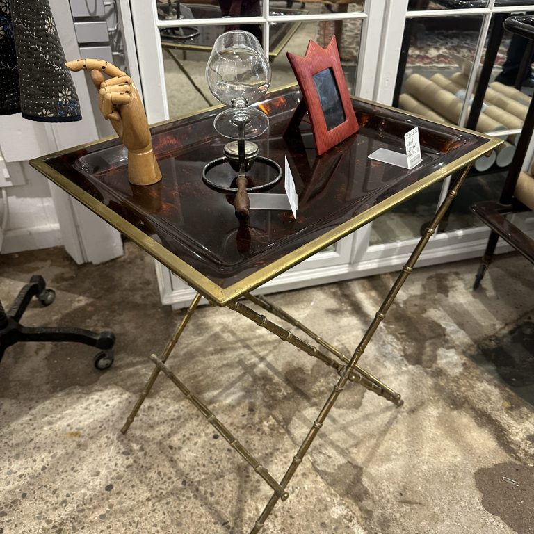 Mid-Century French Bamboo And Rattan Table On Metal Stand