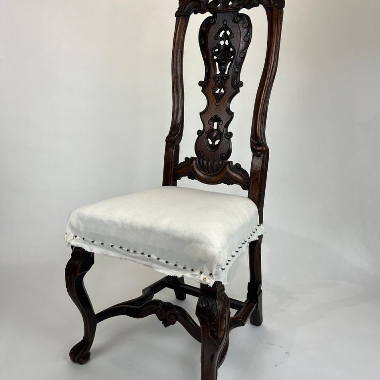 Portugese Single Walnut Hall Chair With Impressive Carving, 18th Century